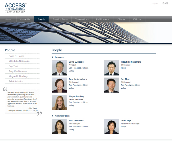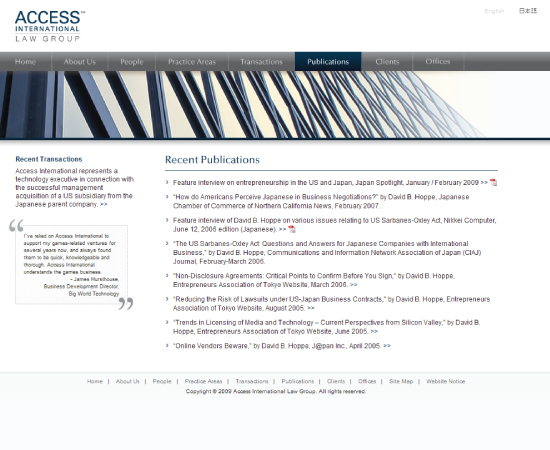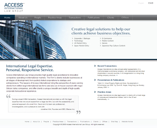Access International Law Group is a law firm with offices in San Francisco, Tokyo and Beijing. I was responsible for creating the identity for AILG as well as designing the multilingual website.