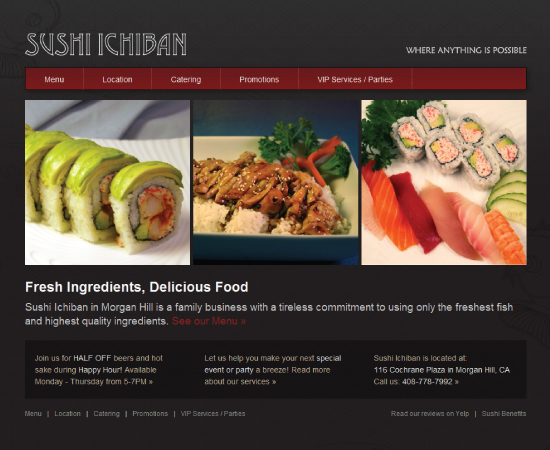 Sushi Ichiban is a family-owned restaurant in Morgan Hill. The website reflects their quality food, friendly service and atmosphere. Web Development also by Steven Chen